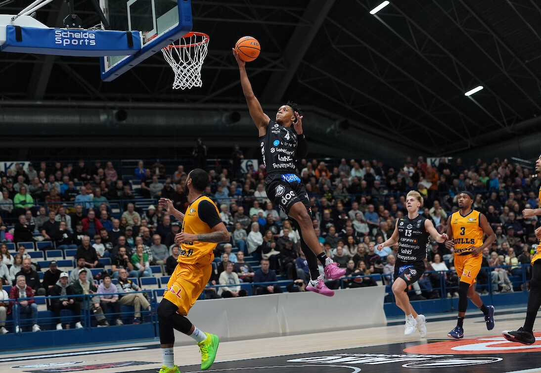 Luerensley Williams III (#4) esitteli korintekotaitojaan Lahden voitossa. Kuva: Ville Vuorinen